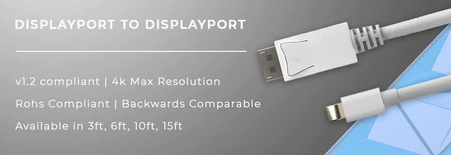 This directional Mini DisplayPort Male to DisplayPort Male cable allows you to connect a device with a Mini DisplayPort output (MacBook Pro, MacBook Air, iMac, computer or laptop) to a device with a DisplayPort input (Monitor, Projector, etc) Technical Specs...